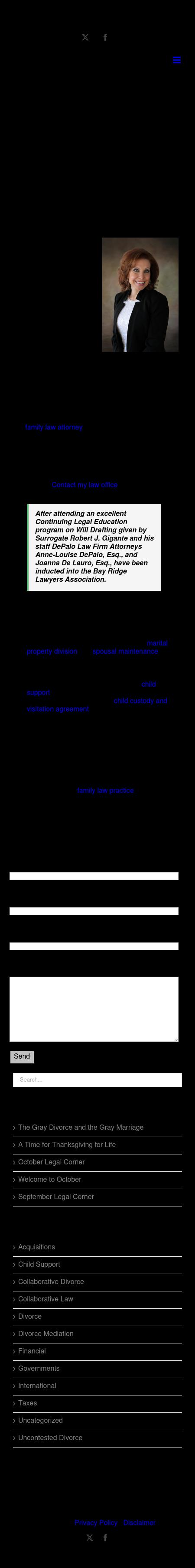Anne-Louise DePalo, Esq. Staten Island Divorce Attorney | New York Family Law Lawyer | Richmond County Child Support Law Firm Anne-Louise DePalo is a family law attorney on Staten Island with more than 25 years of experience.
