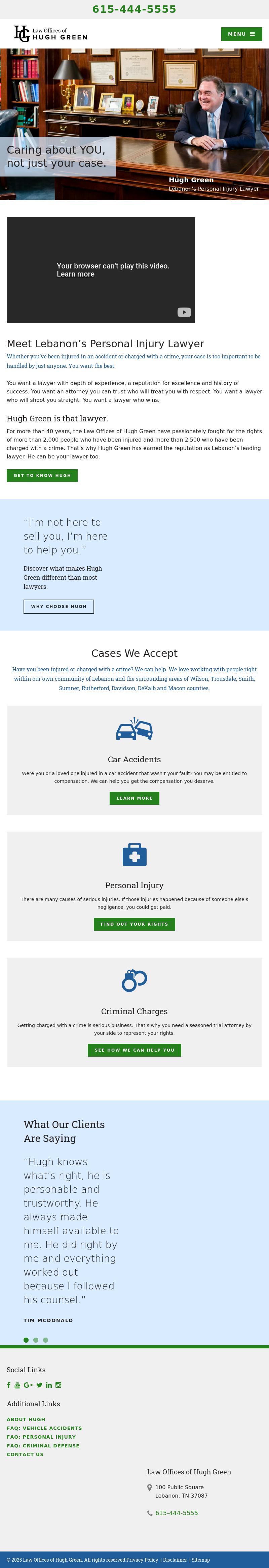 Law Office of Hugh Green Law Offices Of Hugh Green - Law Firm | Lebanon, TN More than 35 years of experience, FREE Consultation, Reputable Representation. Attorney, Law Firm, Injury Law. Call 615-444-5555.