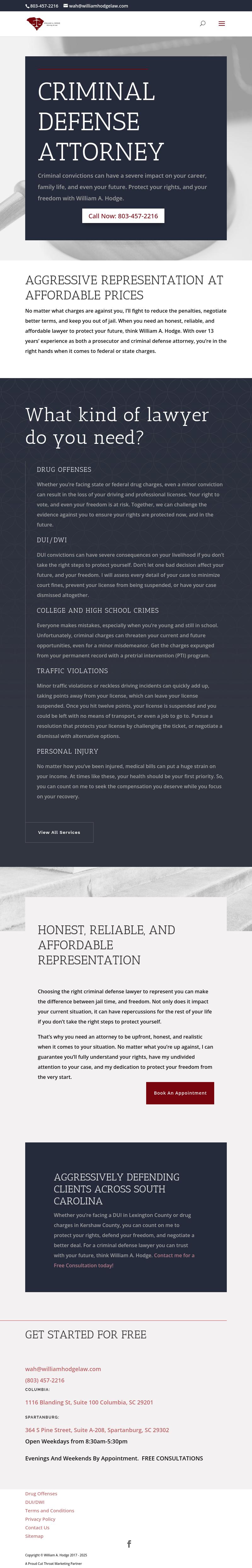 William A. Hodge, Attorney at Law Criminal Defense Attorney | DUI and Drug Crimes Lawyer | Columbia At William A. Hodge, Attorney at Law, in Columbia, South Carolina, you get honest, aggressive and affordable representation for criminal matters. 803-457-2216.